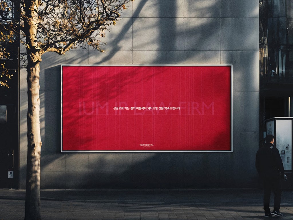 This branding project for IUM IP LAW FIRM visualizes the firm’s core value—connection—through structured, flowing elements. Geometric lines and a balanced layout form a brand image that feels both strong and flexible, grounded in professionalism and trust. The logotype is built on a classic serif structure with refined tension and proportion. Its grid-based construction reflects the precision and stability at the heart of the brand. From color system and typography to patterns and key visuals, each element was designed to flow cohesively as part of a unified visual language.